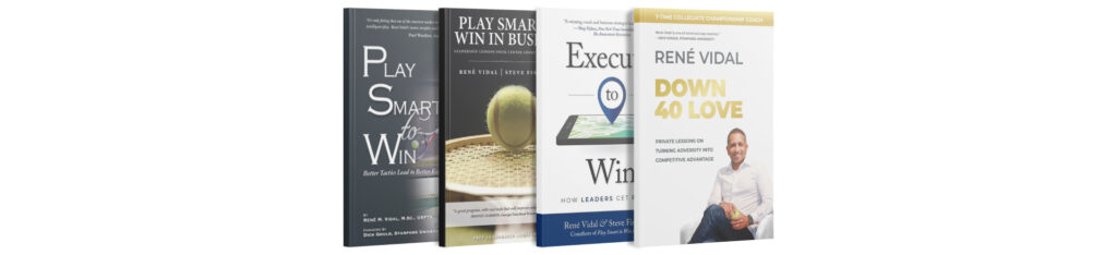 “Play Smart to Win is a great addition to the libraries of tennis and is invaluable to both team coaches and teaching pros.”–Dick Gould, Stanford University John L. Hinds Director of Tennis (From the Foreword)”Play Smart to Win should be read by players of any level if they’re interested in improving their game.”–Dick Savitt, Australian and Wimbledon Grand Slam Singles Champion”It’s only fitting that one of the smartest coaches in tennis writes a book on intelligent play. Rene’ Vidal’s tennis insights and wisdom are timeless.”–Paul Wardlaw, Brown University Head Women’s Tennis Coach and author of Pressure Tennis